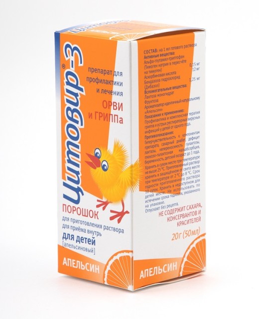 Цитовир-3 порошок для приготовления раствора внутрь 20г/50мл