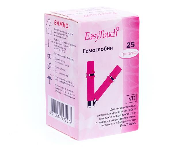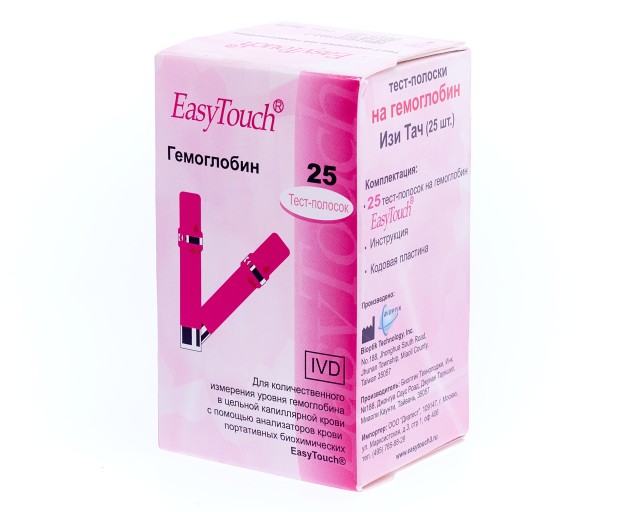 Тест-полоски предназначены для самостоятельного контроля уровня гемоглобина в крови с помощью биохимического анализатора Изи Тач (EasyTouch).