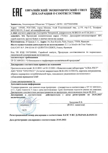 Виши дезодорант-спрей против белых и желтых пятен 48часов 125мл