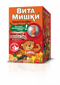 Сбалансированный витаминно-минеральный комплекс с облепихой в виде вкусных мармеладных пастилок-мишек с натуральными фруктовыми и овощными экстрактами для детей с 3-х лет.