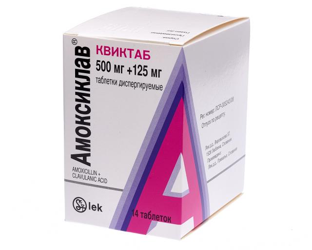 Амоксиклав Квиктаб таблетки диспергируемые 500мг+125мг №14