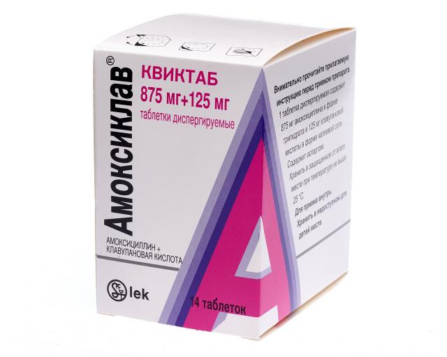 Амоксиклав Квиктаб таблетки диспергируемые 875мг+125мг №14