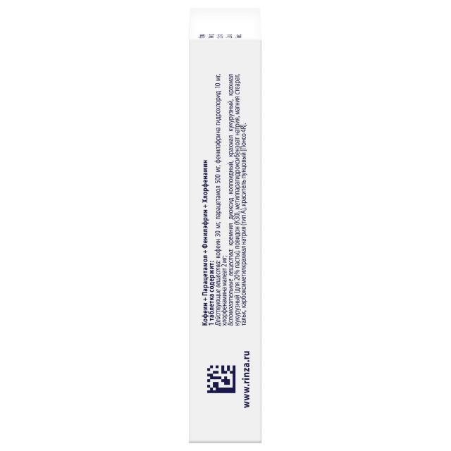 Выраженный атеросклероз коронарных артерий; артериальная гипертензия; портальная гипертензия; сахарный диабет; одновременный прием трициклических антидепрессантов, ингибиторов моноаминоксидазы (МАО), бета-адреноблокаторов, в том числе в течение 2 недель после отмены ингибиторов МАО; повышенная чувствительность к кофеину, хлорфенирамину, парацетамолу, фенилэфрину или другим компонентам препарата; прием других препаратов, содержащих вещества, входящие в состав препарата Ринза®; беременность, период лактации; детский возраст (до 15 лет); алкоголизм.