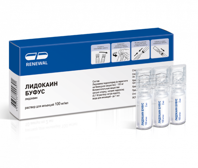 Лидокаин буфус раствор для инъекций 100мг/мл 2мл №10