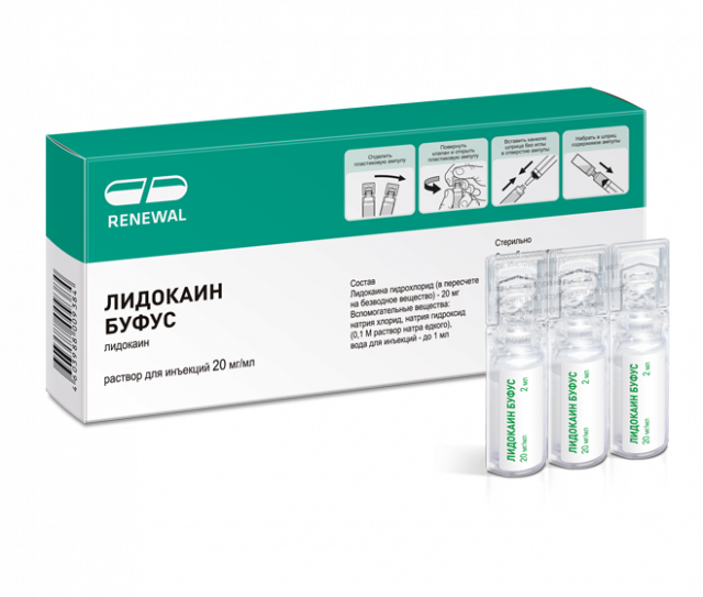 Лидокаин буфус раствор для инъекций 20мг/мл 2мл №10