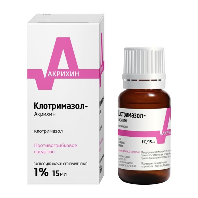 Клотримазол-Акрихин раствор наружный 1% 15мл