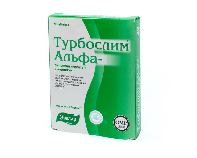Турбослим альфа-липоевая/Л-карнитин таблетки Эвалар №20