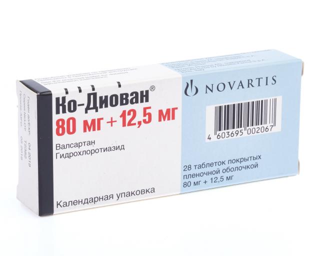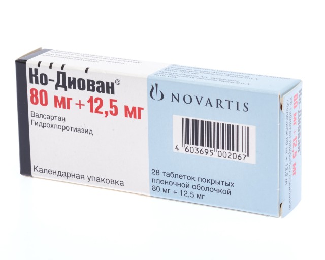 Ко-Диован таблетки покрытые оболочкой 80мг+12,5мг №28