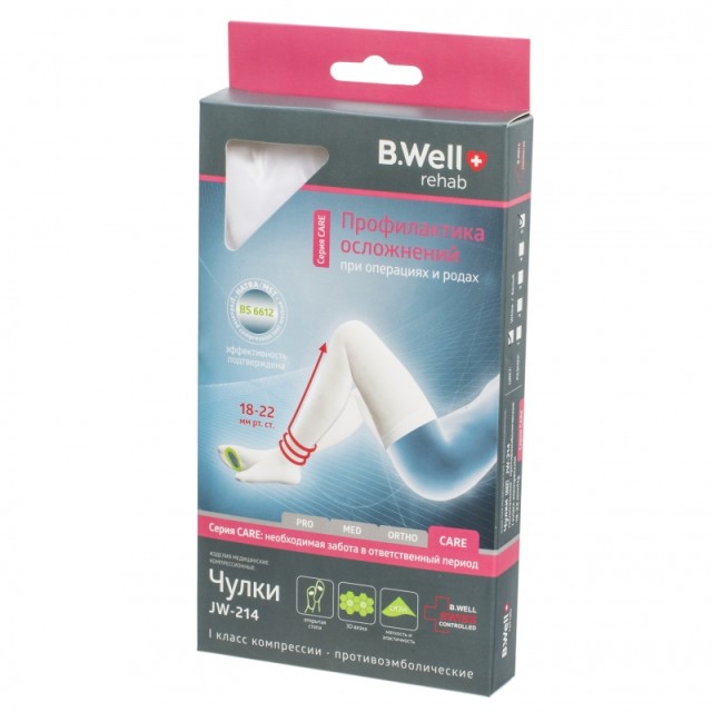 Чулки компрессионные госпитальные (противоэмболические) B.Well rehab JW-214, I класс компрессии 18-22 мм рт. ст. предназначены для профилактики венозных тромбозов и венозных тромбоэмболических осложнений (ВТЭО) в условиях стационара.
