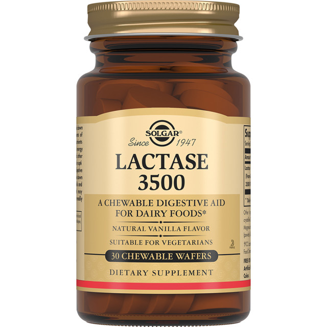 Дополнительный прием продукта «Лактаза 3500» способствует пищеварению и расщеплению лактозы (молочного сахара), помогая снизить симптомы лактазной недостаточности (диарея, спазмы и боли в животе, избыточное газообразование) при приеме молочных продуктов. Жевательные таблетки обладают приятным вкусом и ароматом натуральной ванили.