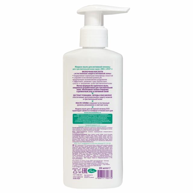 Жидкое мыло для интимной гигиены для интимной гигиены «evo» дарит ощущение комфорта, мягкости и чистоты на весь день.