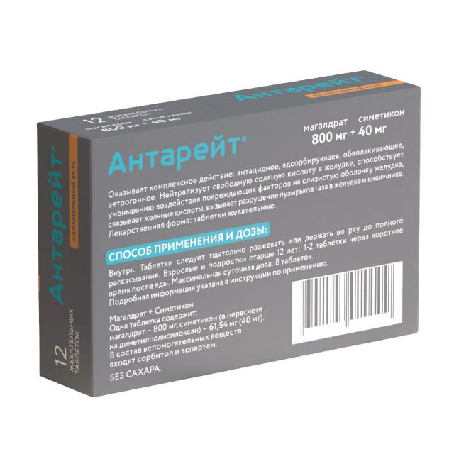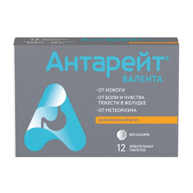 Антарейт Валента таблетки жевательные 800мг+40мг №12