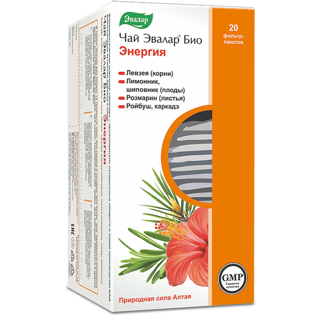 Ройбуш, плоды шиповника, корни левзеи, каркадэ (цветки гибискуса), листья розмарина, плоды лимонника