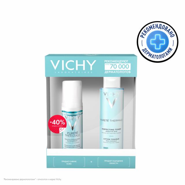 Виши Пюрте Термаль набор тоник совершенствующий для всех типов кожи 200мл+пенка очищающая 150мл