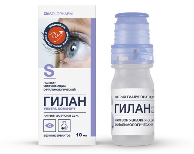 В случае совместного применения с офтальмологическими препаратами рекомендуется соблюдать паузу не менее 30 минут между закапыванием раствора Гилан Ультра комфорт и применением глазных капель.