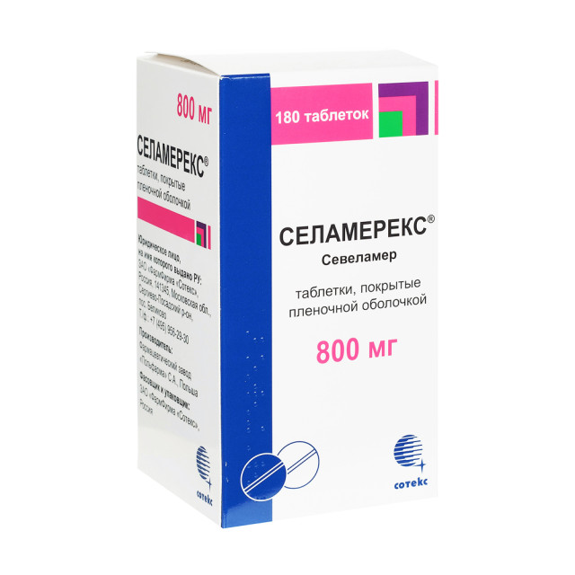 СЕЛАМЕРЕКС® показан при гиперфосфатемии у взрослых больных, находящихся на гемодиализе. СЕЛАМЕРЕКС® следует применять как часть комплексной терапии, направленной на предупреждение поражения костей в связи с заболеванием почек и включающей в себя добавки кальция, 1,25-гидроксивитамин D3 или один из его аналогов.