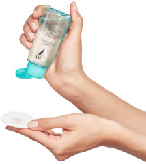 Нанести при помощи ватного диска на веки и ресницы. Задержать на несколько секунд. Аккуратно убрать ватный диск, двигаясь к концу ресниц. Не требует смывания водой.