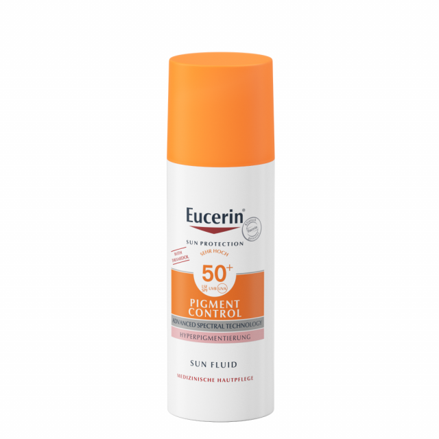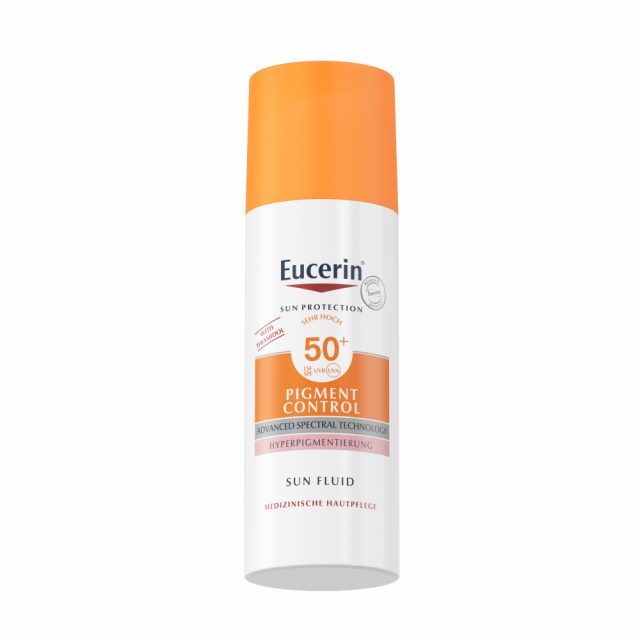 Солнцезащитный флюид против пигментации SPF 50+ Eucerin — это ежедневный солнцезащитный крем для лица для всех типов кожи, который помогает предотвратить вызываемую солнцем гиперпигментацию.
