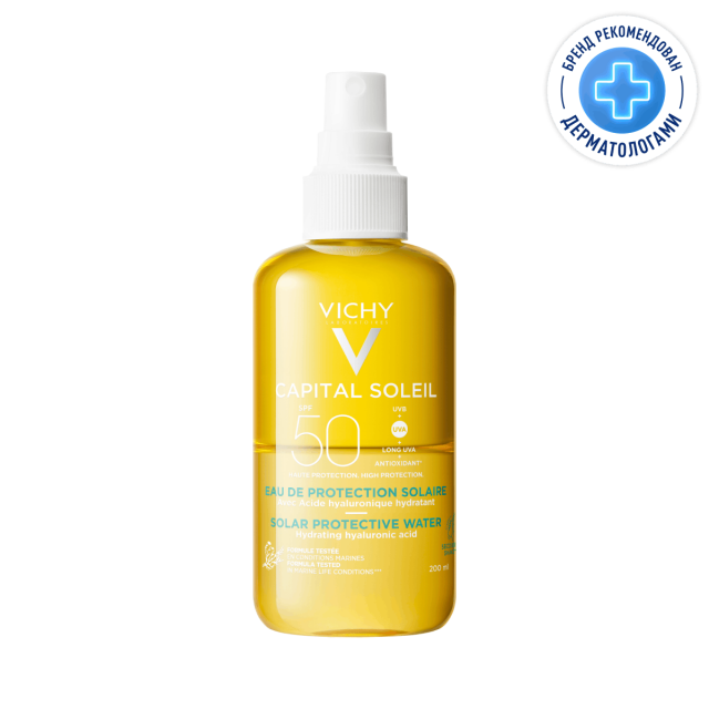 КАПИТАЛ СОЛЕЙ ДВУХФАЗНЫЙ СОЛНЦЕЗАЩИТНЫЙ СПРЕЙ УВЛАЖНЯЮЩИЙ SPF50 200МЛ [Гиалуроновая кислота] + [Термальная вода VICHY] Максимальная защита от UVA- и UVB-лучей в инновационной текстуре воды