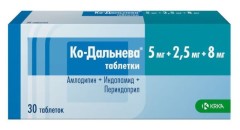 Ко-Дальнева® - комбинированный препарат, содержащий периндоприла эрбумин (ингибитор АПФ), индапамид (тиазидоподобный диуретик) и амлодипин (блокатор "медленных" кальциевых каналов (БМКК)).