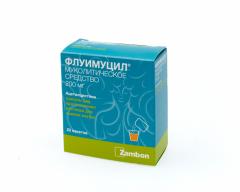 Муколитический препарат. Разжижает мокроту, увеличивает ее объем и облегчает ее отделение. Действие ацетилцистеина связано со способностью его сульфгидрильных групп разрывать внутри- и межмолекулярные дисульфидные связи кислых мукополисахаридов мокроты, что приводит к деполяризации мукопротеидов и уменьшению вязкости мокроты. Сохраняет активность при наличии гнойной мокроты. Увеличивает секрецию менее вязких сиаломуцинов бокаловидными клетками, снижает адгезию бактерий на эпителиальных клетках слизистой оболочки бронхов. Стимулирует мукозные клетки бронхов, секрет которых лизирует фибрин. Аналогичное действие оказывает на секрет, образующийся при воспалительных заболеваниях ЛОР-органов. Оказывает антиоксидантное действие, обусловленное наличием SH-группы, способной нейтрализовать электрофильные окислительные токсины. Ацетилцистеин легко проникает внутрь клетки, деацетилируется до L-цистеина, из которого синтезируется внутриклеточный глутатион. Глутатион - высокореактивный трипептид, мощный антиоксидант и цитопротектор, нейтрализующим эндогенные и экзогенные свободные радикалы и токсины. Ацетилцистеин предупреждает истощение и способствует повышению синтеза внутриклеточного глутатиона, участвующего в окислительно-восстановительных процессах клеток, способствуя детоксикации вредных веществ. Этим объясняется действие ацетилцистеина в качестве антидота при отравлении парацетамолом. Предохраняет альфа1-антитрипсин (ингибитор эластазы) от инактивирующего воздействия НОСl - окислителя, вырабатываемого миелопероксидазой активных фагоцитов. Обладает также противовоспалительным действием (за счет подавления образования свободных радикалов и активных кислородсодержащих веществ, ответственных за развитие воспаления в легочной ткани).