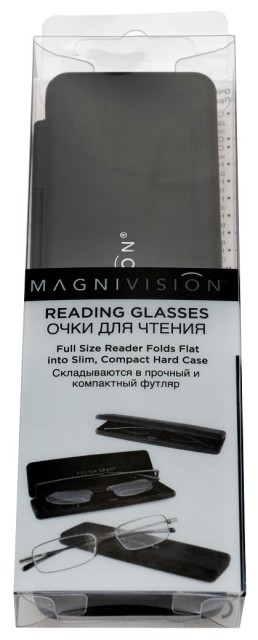 Складные очки для чтения Magnivision® – это незаменимый аксессуар для людей, находящихся в постоянном движении, у которых очки должны быть всегда под рукой. Они очень компактны, не занимают много места, а надежный пластиковый футляр обеспечивает сохранность. Выдвижные телескопические заушники с пружинным креплением.