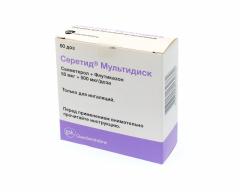 Препарат Серетид® Мультидиск - комбинированный препарат, который содержит салметерол и флутиказона пропионат, обладающие разными механизмами действия. Салметерол предотвращает возникновение симптомов бронхоспазма, флутиказона пропионат улучшает легочную функцию и предотвращает обострение заболевания. Препарат Серетид® Мультидиск из-за более удобного режима дозирования может быть альтернативой для пациентов, которые одновременно получают агонист бета2-адренорецепторов и ингаляционный глюкокортикостероид (ГКС) из разных ингаляторов.