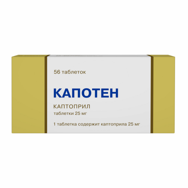 Активное вещество: каптоприла 25 мг.