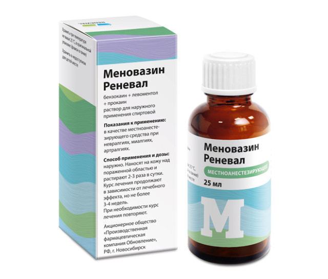 Препарат Меновазин Реневал содержит действующие вещества бензокаин, левоментол и прокаин, которые оказывают местное обезболивающее (местноанестезирующее) действие.