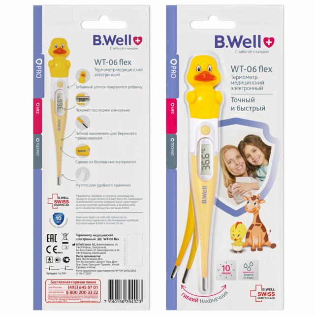 B.Well WT-06 "Утенок" - это лучший выбор для ребенка. Такой термометр обеспечит безопасность ребенка. Электронный термометр B.Well WT-06 сделан без применения ртути и стекла.