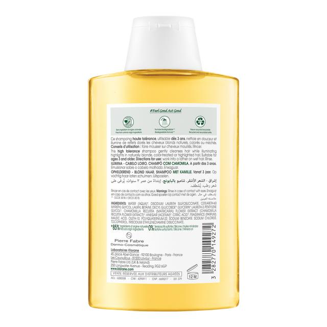 Благодаря экстракту ромашки KLORANE шампунь обладает осветляющими свойствами: он содержит апигенин (желтый пригмент), который усиливает естественный светлый цвет волос при каждом мытье. В результате волосы приобретают светлый золотистый оттенок.