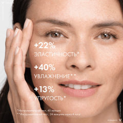 Инновация* от Vichy: Лаборатория Vichy разработала крем, соединяющий активные ингредиенты: Вулканическая вода Vichy, обогащенная 15 минералами; Проксилан; Экстракт Кассии; Гиалуроновая кислота натурального происхождения. Крем создан компенсировать видимые признаки менопаузы на коже с целенаправленным действием на восстановление плотности, сокращение морщин и повышение четкости контуров лица.