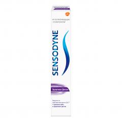 Зубная паста Sensodyne Здоровье Десен эффективно снижает повышенную чувствительность зубов, обеспечивает защиту от чувствительности в течение всего дня, а также поддерживает здоровье десен, замедляя рост бактерий благодаря содержанию цитрата цинка. Зубная паста Sensodyne Здоровье Десен также защищает от кариеса благодаря содержанию фтора.