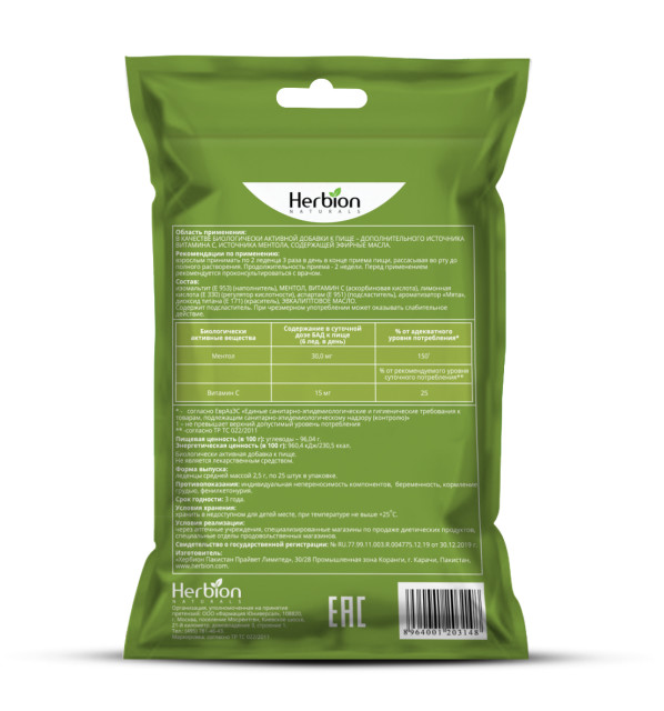 Основные показания к применению: в качестве биологически активной добавки к пище – дополнительного источника витамина С, источника ментола, содержащей эфирные масла.
