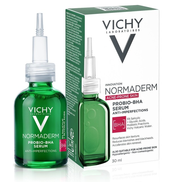 ИННОВАЦИЯ* ОТ VICHY: Лаборатории VICHY объединили Вулканическую воду VICHY с 5% Салициловой + Гликолевой кислотами и Пробиотической фракцией. Сыворотка выравнивает рельеф кожи и корректирует признаки проблемной кожи - несовершенства, черные точки и расширенные поры. Кожа обновлена и выглядит более здоровой. Гипоаллергенно. Некомедогенно.