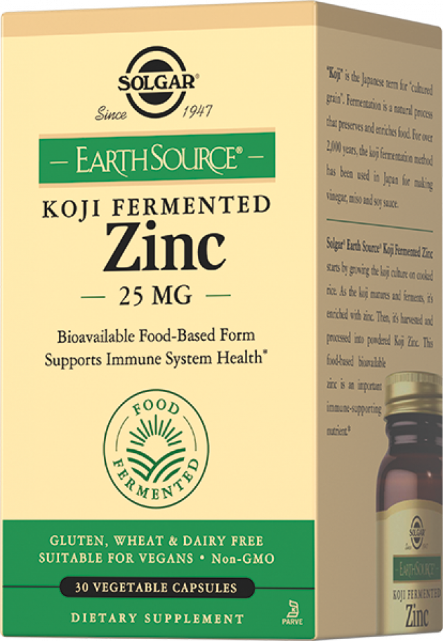 Цинк 25 мг в ферментированной культуре Коджи - инновация от Solgar, высокобиодоступная форма цинка, которая легко усваивается организмом с минимальным риском развития побочных эффектов со стороны ЖКТ, а капсульная форма обеспечивает комфортный прием.