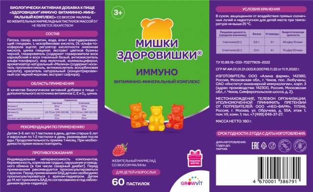 Здоровишки Иммуно витаминно-минеральный комплекс мармеладные пастилки жевательные №60 Гроувит