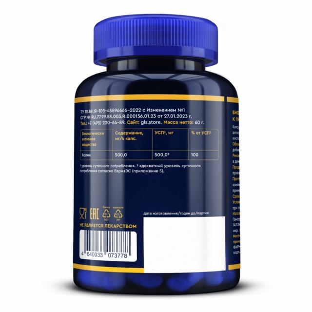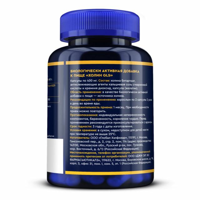 Биологически активная добавка к пище «Холин GLS», 120 капсул (капсулы по 400 мг).