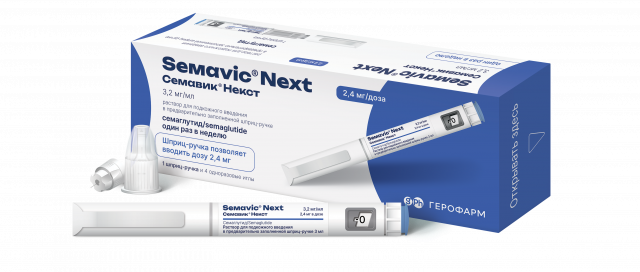 Семавик® Некст — это препарат для похудения и поддержания массы тела, который содержит действующее вещество семаглутид. Семаглутид является аналогом глюкагоноподобного пептида 1 (ГПП-1) человека, который выделяется из кишечника после приема пищи. Семавик® Некст воздействует на рецепторы в головном мозге, которые контролируют ваш аппетит, заставляя Вас чувствовать себя сытым и менее голодным, а также испытывать меньшую тягу к еде. Это поможет Вам есть меньше пищи и снизить массу тела. Семавик® Некст показан в качестве дополнения к низкокалорийной диете и физической нагрузке.
