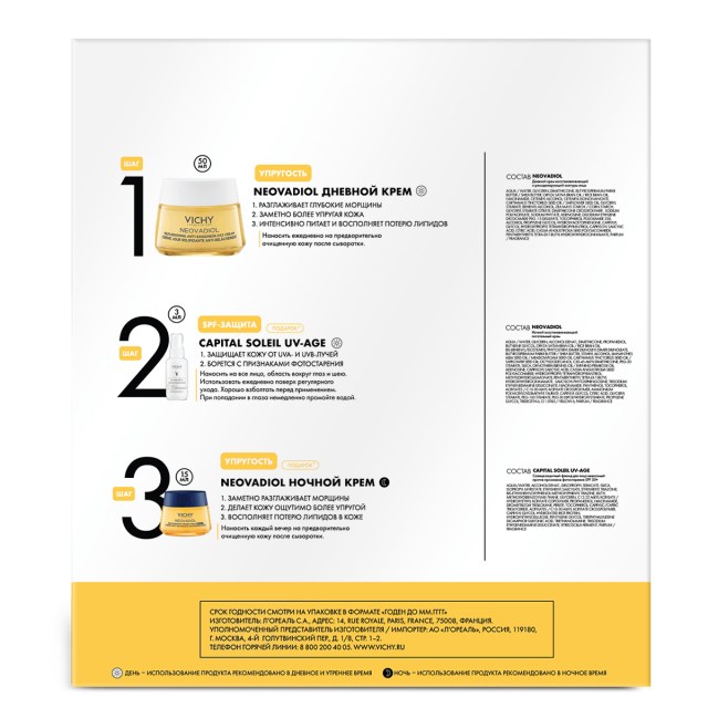 Виши Неовадиол набор крем дневной 50мл+крем ночной 15мл+КапиталСолей Эйч Дейли SPF50 флюид 3мл