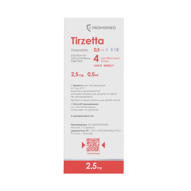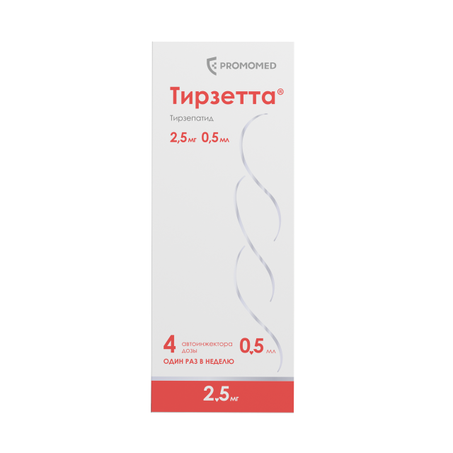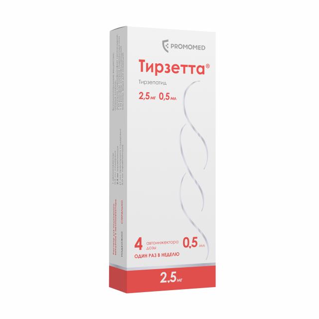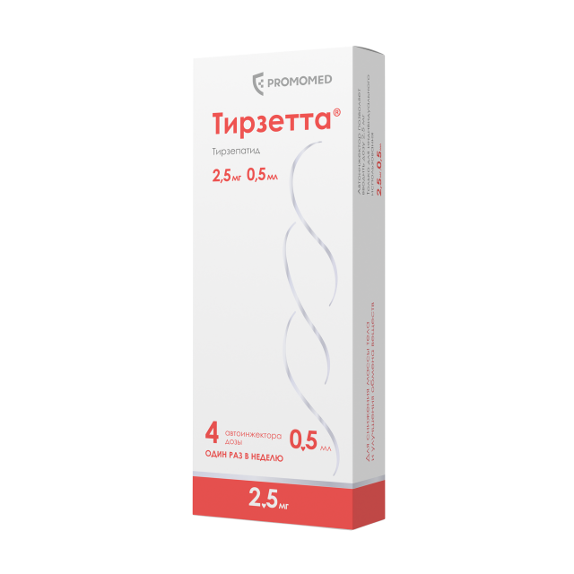 Каждый шприц/картридж содержит 2,5 мг тирзепатида в 0,5 мл раствора (5 мг/мл).