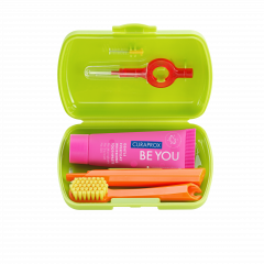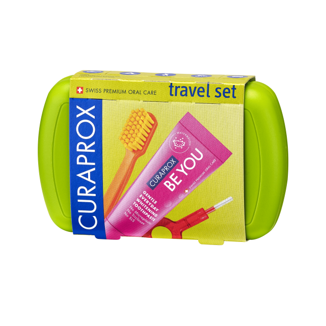 Курапрокс набор дорожный зубная щетка CS5460+зубная паста Любитель конфет розовая 10мл+ершик CPS07+CPS09+держатель UHS409+бокс зеленый