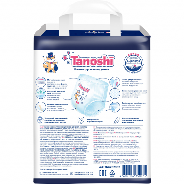 Таноши подгузники-трусики ночные XL 12-22кг №20