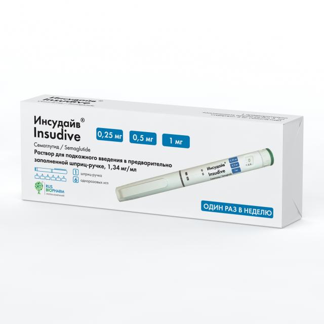 Инсудайв® 0,25 мг/доза или 0,5 мг/доза: раствор для подкожного введения в предварительно заполненной шприц-ручке позволяет вводить дозы 0,25 мг или 0,5 мг. Данная шприц-ручка предназначена для повышения дозы и поддержания терапевтической дозы 0,5 мг. Одна шприц-ручка содержит 1,5 мл раствора.