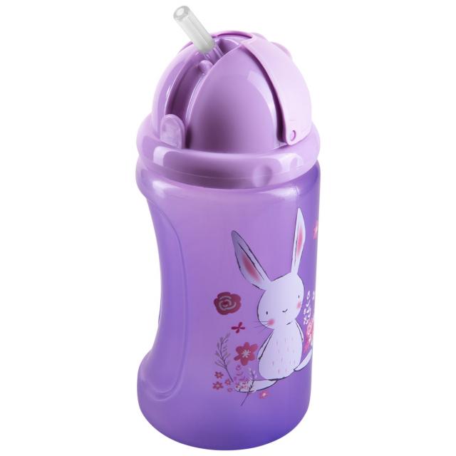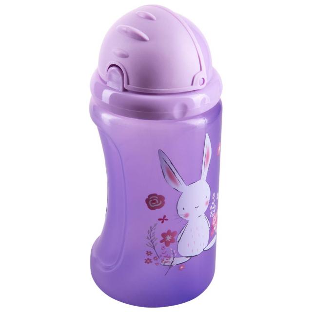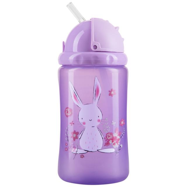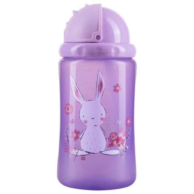 Мягкая силиконовая соломинка выдвигается при легком нажатии на крышку. Благодаря большому объёму, малыш будет обеспечен напитком в течение длительного времени, например, на прогулке или в путешествии. А яркий, привлекательный дизайн с забавными зайчиками понравится и маме и малышу.