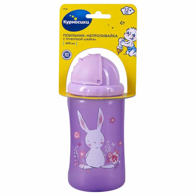 Курносики поильник-непроливайка с трубочкой Зайка 400мл 17126