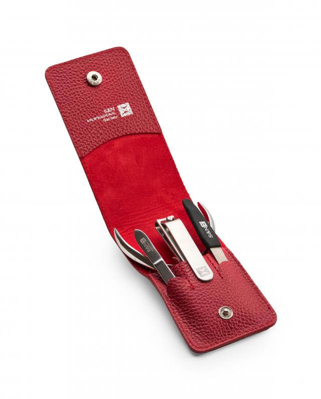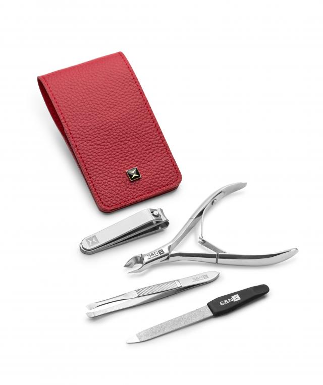 Набор SN Professional для обрезного маникюра – экспресс-решение для сторонников классического подхода. Профессиональные инструменты изготовлены из высокопрочной стали с добавлением кобальта и прошли дополнительную профессиональную заточку, поэтому прослужат много лет, сохраняя свою функциональность. А элегантный кожаный чехол в красном цвете станет не только удобным местом хранения инструментов, но и роскошным аксессуаром. Стиль и функциональность в одном наборе!