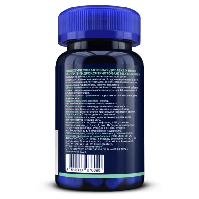 Биологически активная добавка к пище «5-НТР (5-гидрокситриптофан) maximum GLS», 60 капсул (капсулы по 290 мг).