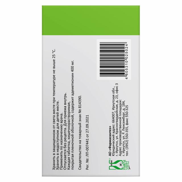 Обычно суточная доза составляет 1-2 таблетки в сутки (от 400–800 мг адеметионина в сутки) и может быть увеличена до 4 таблеток в сутки (до 1600 мг адеметионина в сутки). Эффект обычно проявляется через 7–14 дней лечения и сохраняется при дальнейшем применении препарата.