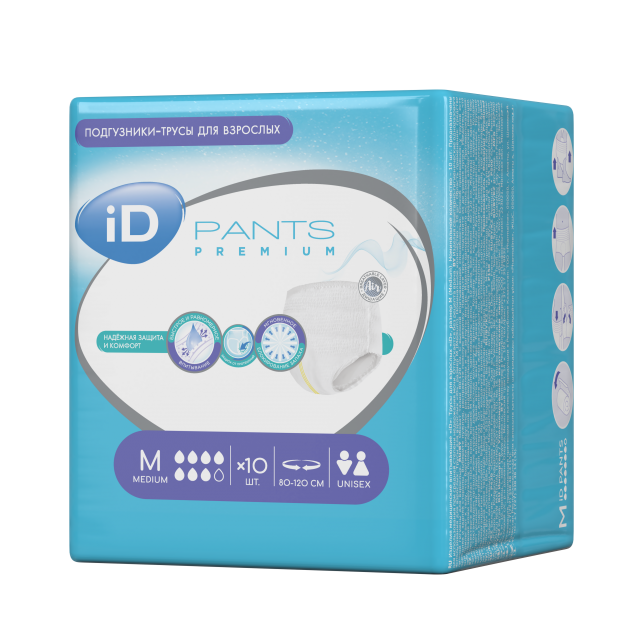 Подгузники-трусы iD PANTS Premium соединили в себе комфорт привычного нижнего белья и высокую впитывающую способность. Они имеют мягкий дышащий внутренний слой, моментально нейтрализуют неприятные запахи и повторяют все изгибы тела, сохраняя плотное прилегание даже при активном движении. Изделие отличается повышенной скоростью впитывания влаги, благодаря улучшенному абсорбирующему слою. А наличие индикатора наполнения подгузника помогает легко понять, когда пора сменить изделие на новое. Чтобы подгузники-трусы еще проще стало надевать, на поясе со стороны спины размещен специальный индикатор.